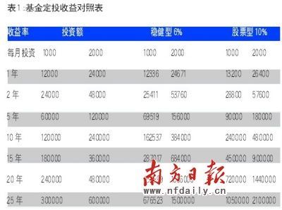 表1是按照基金定投的方式,每月分別準(zhǔn)備1000元、2000元,按照收益率6%和10%計算得到的實(shí)際收益,大家可以對照下自己適合那種投資方式,以及需要準(zhǔn)備的年限籌劃自己的退休養(yǎng)老金。