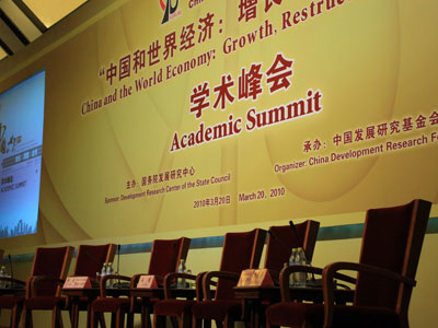 中國發(fā)展高層論壇2010年會(huì)主席臺(新浪財(cái)經(jīng) 梁斌 攝)