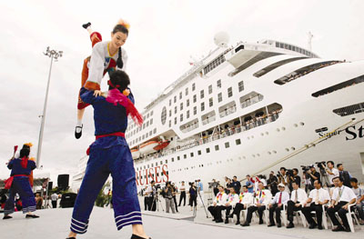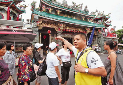 郵輪3日抵達臺南安平商港后,旅客的岸上觀光行程隨即展開,約有300至400人選擇參與觀光團,分4條不同路線上岸游覽。在臺南著名古跡赤坎樓售賣小吃的攤檔負責人稱,乘坐郵輪的大陸旅客比一般大陸旅客消費力強,3日生意額明顯上升,料可帶動當?shù)芈糜问找妗?/P>