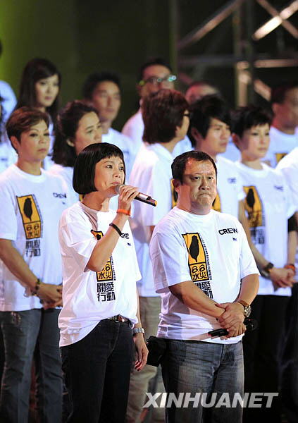 8月17日,在香港舉行的賑災(zāi)義演中,臺灣藝人張艾嘉(左)與香港藝人曾志偉主持義演晚會。新華社記者陳鐸攝