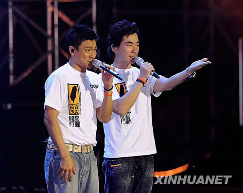 8月17日,在香港舉行的賑災(zāi)義演中,香港藝人劉德華(左)和臺灣藝人任賢齊演唱《世界第一等》。新華社記者陳鐸攝