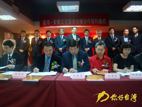 你好臺(tái)灣網(wǎng)臺(tái)北11月17日消息(記者 李曉奇 白鷺)“安徽文化周”活動(dòng)之一的“安徽文化周圖書展”17日在臺(tái)北上海書店開(kāi)幕。 書展開(kāi)幕式上,安徽出版集團(tuán)與臺(tái)灣多家相關(guān)出版社簽約了皖版圖書版權(quán)合作,金額達(dá)5000多萬(wàn)美元。