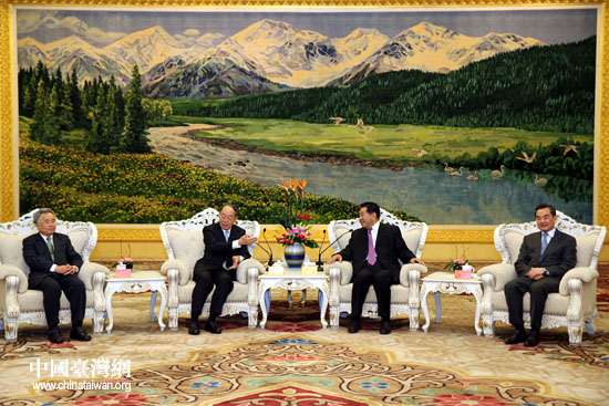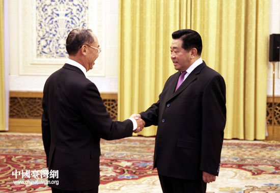 12月9日下午,中共中央政治局常委、全國(guó)政協(xié)主席賈慶林在北京會(huì)見(jiàn)以錢(qián)復(fù)為團(tuán)長(zhǎng)的臺(tái)灣金融代表團(tuán)一行。(中國(guó)臺(tái)灣網(wǎng) 鐘寶華 攝)