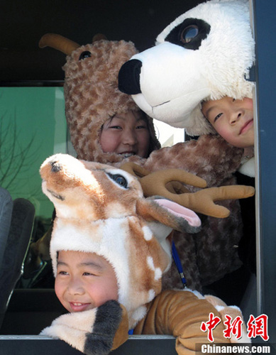 16日上午,威海小朋友來到當(dāng)?shù)貦C場迎候臺灣梅花鹿和長鬃山羊,她們將穿著羊與鹿以及大熊貓樣式的服裝表演舞蹈。這三種珍貴的動物今起將一同生活在劉公島國家森林公園。劉舒凌 攝