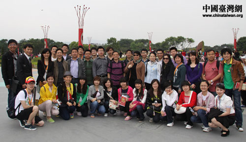 2011年4月11日,40余名大陸高校師生參觀臺(tái)北花博會(huì),在園區(qū)內(nèi)合影留念。(中國(guó)臺(tái)灣網(wǎng) 楊永青 攝)