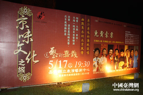 高振生說(shuō),本次京味文化之旅以濃郁特色北京曲藝為主要內(nèi)容,輔助民間藝術(shù)、書法展示、魅力北京圖片展,內(nèi)容豐富、層次多樣。以嘉義地區(qū)的普通民眾為對(duì)象,深入基層,先后深入臺(tái)灣中南部的嘉義鄉(xiāng)鎮(zhèn)、農(nóng)村、社區(qū)、學(xué)校進(jìn)行展演,所接觸的事最基層、最底層的民眾,同他們進(jìn)行面對(duì)面的交流,讓臺(tái)灣最底層的民眾即能夠享受到兩岸關(guān)系和平發(fā)展所帶來(lái)的物質(zhì)成果,更讓他們能享受到精神成果!熬┪段幕靡蚱洫(dú)特性而具有旺盛的生命力,只要臺(tái)灣民眾有需求,我們就會(huì)認(rèn)真把它做好,使之成為兩地之間溝通交流的一個(gè)品牌!