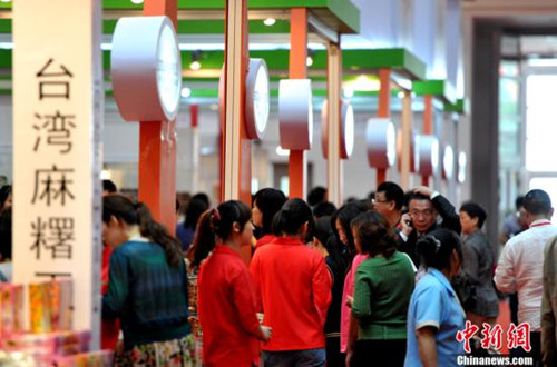 臺灣食品工業(yè)在本屆海交會上派出赴大陸的首個大型食品展團引人關(guān)注。蔡文凱透露,接下來,臺灣食品工業(yè)還將在大陸沈陽、天津、廣州、南京、武漢、重慶等地舉辦臺灣名品博覽會及參加“吉林東北亞貿(mào)易博覽會”、“成都西部國際博覽會”以及上海國際食品展。