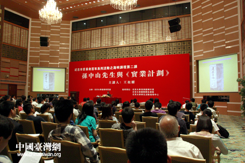 中國(guó)臺(tái)灣網(wǎng)5月23日北京消息 身著黑色中山裝,講著一口標(biāo)準(zhǔn)的美式英文,5月21日晚,孫中山先生曾外孫、孫中山和平教育基金會(huì)副主席、夏威夷華人聯(lián)義中會(huì)理事王祖耀先生在辛亥革命百周年之際走進(jìn)北京大學(xué)英杰交流中心,舉行了題為“孫中山先生與《實(shí)業(yè)計(jì)劃》”的演講。