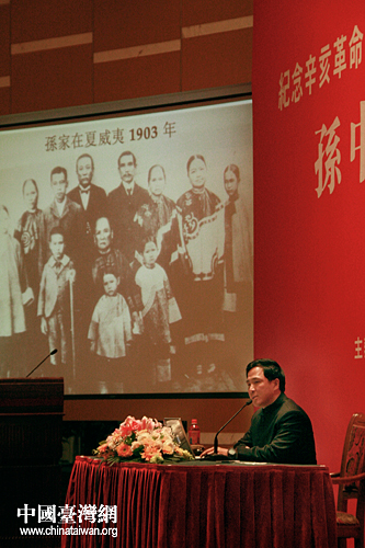 演講過(guò)程中,王祖耀先生向大家展示了孫家珍貴的資料圖片。(中國(guó)臺(tái)灣網(wǎng) 普燕攝)