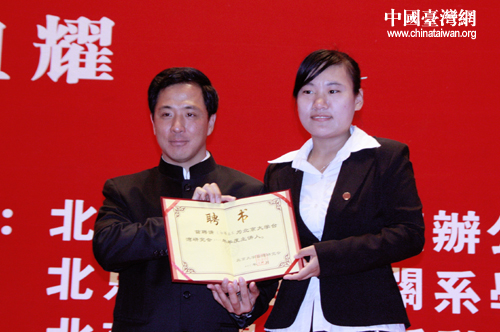 演講結(jié)束后,王祖耀先生受聘為北京大學(xué)臺(tái)灣研究學(xué)會(huì)2011年度主講人。(中國(guó)臺(tái)灣網(wǎng) 普燕攝)