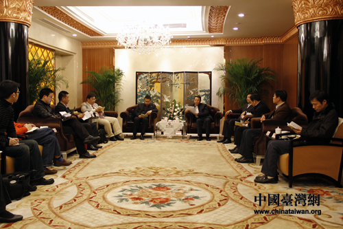 王少邦會見兩岸記者。(中國臺灣網(wǎng) 馬迪 攝)