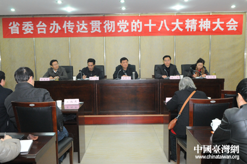 四川省臺(tái)辦召開傳達(dá)貫徹黨的十八精神大會(huì)。(圖片來源:四川省臺(tái)辦)