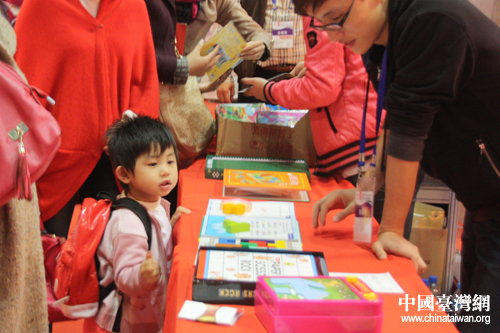 2011年重慶臺灣名品博覽會于11月17日至20日在重慶國際會展中心舉行,圖為小朋友在家長帶領(lǐng)下參加展會。(中國臺灣網(wǎng) 楊麗 攝)