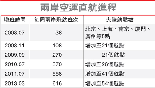 今年3月后兩岸直航班次將從目前每周558班增至616班。(圖片來源:臺(tái)灣《經(jīng)濟(jì)日?qǐng)?bào)》)