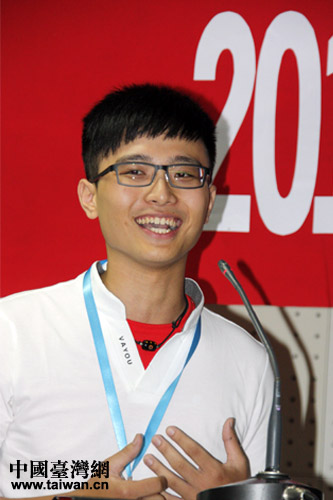 臺(tái)灣弘光科技大學(xué)的廖仲崴發(fā)言,感覺(jué)很親切,希望此行成為一生中美好的回憶。(中國(guó)臺(tái)灣網(wǎng) 郜利敏 攝)