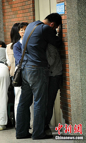 首批阿里山小火車意外死者家屬,29日早上到殯儀館認尸。當家屬看見死者遺體后,均在門外悲傷抱頭痛哭。中新社發(fā) 譚達明 攝