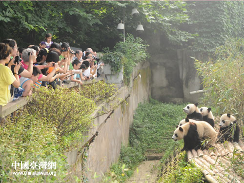 中國(guó)臺(tái)灣網(wǎng)7月30日成都消息 7月29日上午,成都大熊貓繁育基地迎來(lái)了一批特殊的游客,他們是受中共四川省委書(shū)記劉奇葆邀請(qǐng)到四川參加夏令營(yíng)的臺(tái)灣學(xué)生交流團(tuán),他們?cè)谶@里與可愛(ài)的大熊貓進(jìn)行了一番親密接觸。