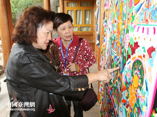 參觀堆繡藝術(shù)品。(青海臺(tái)辦 李斌 攝)