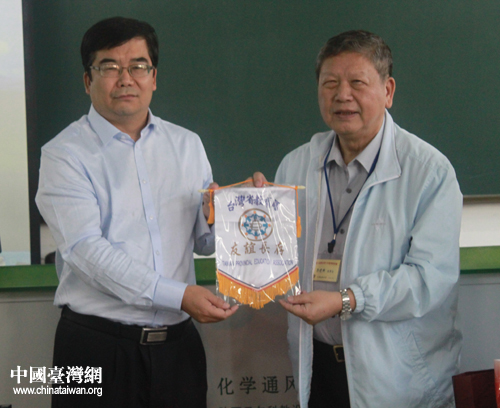 西安八十五中學(xué)接受臺(tái)灣省教育會(huì)贈(zèng)送的旗子。(中國(guó)臺(tái)灣網(wǎng) 孟雅詩(shī) 攝)