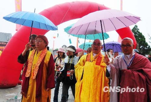 11月15日,臺灣中國佛教協(xié)會理事長凈良長老、中國佛教協(xié)會副會長、少林寺方丈永信法師、臺灣茶禪文化協(xié)會理事長、佛法山開山宗長圣輪法師等兩岸高僧大德齊聚福建福鼎論禪茶。當日,首屆中國·太姥山資國禪茶文化國際研討會在福鼎舉行。 中新社發(fā) 王東明 攝