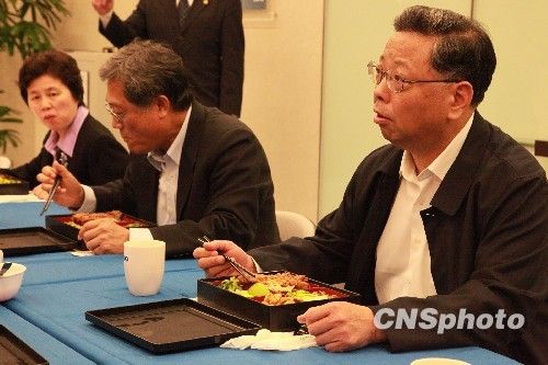 “臺灣的便當(dāng)很好吃。臺灣叫便當(dāng),我們叫盒飯!背粤艘话耄S小晶省長離席,來到記者就餐的另一個小房間,特別向跟隨采訪報道的臺灣媒體朋友們表示感謝和問候,并和臺灣記者攀談起來。