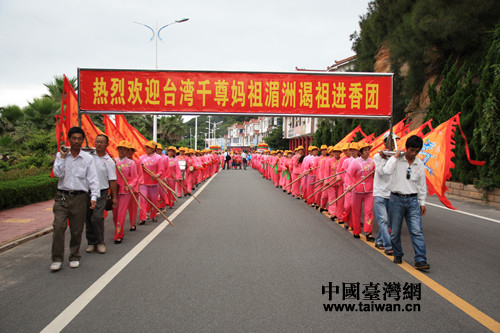 6月13日,來自臺灣北中南179家媽祖宮廟970名信眾代表來到“媽祖故里”福建莆田湄洲島拜謁進(jìn)香,祈求兩岸風(fēng)調(diào)雨順。以“中華媽祖情、兩岸一家親”為主題的第五屆海峽論壇·媽祖文化周開幕。(中國臺灣網(wǎng) 扶海濤 攝)