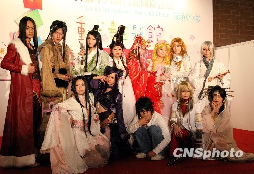 二0一0臺(tái)北國(guó)際書展一月二十七日在臺(tái)北市世貿(mào)三個(gè)展覽館同時(shí)登場(chǎng),共計(jì)八百八十三家出版社、百萬(wàn)冊(cè)以上的書籍參展。圖為在動(dòng)漫館中兩岸COSPLAY(角色扮演)團(tuán)體同場(chǎng)競(jìng)技交流。中新社發(fā) 曾嘉 攝