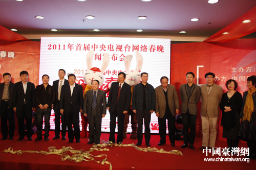 央視網(wǎng)絡(luò)春晚新聞發(fā)布會與會領(lǐng)導(dǎo)和嘉賓合影留念。(中國臺灣網(wǎng)董憲超攝)