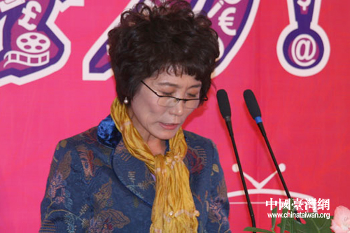 中國網(wǎng)絡(luò)電視臺副總經(jīng)理王秀云在新聞發(fā)布會上致辭(中國臺灣網(wǎng)董憲超攝)