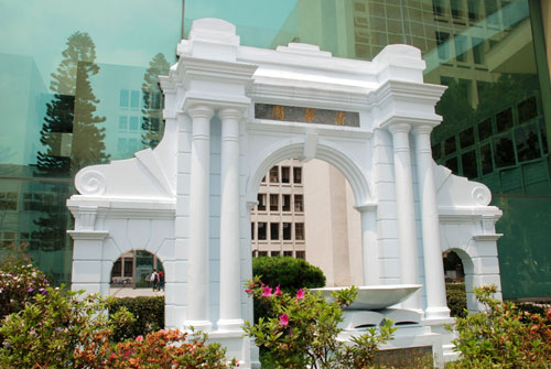 新竹清華大學(xué)行政大樓后方有個拱門造型的“清華園”,這是以北京清華二校門清華園1/3比例縮小制作的,展現(xiàn)兩岸清華的血脈淵源。 圖片來源:“中央社”
