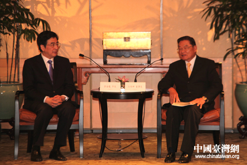 ;鶗麻L江丙坤會見北京市長郭金龍(中國臺灣網(wǎng) 趙輝 攝)