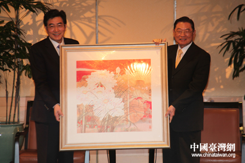 郭金龍向江丙坤贈送紀(jì)念品(中國臺灣網(wǎng) 趙輝 攝)