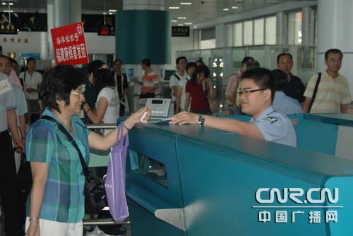 邊檢民警正在為旅客辦理通關手續(xù)
