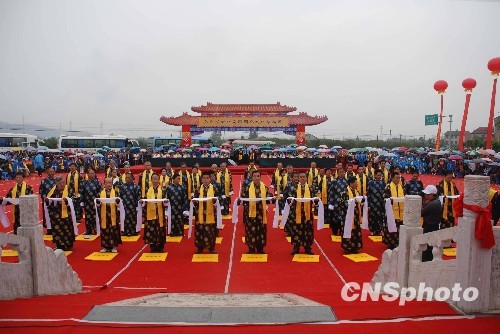 9月27日,湖北當(dāng)陽(yáng)關(guān)陵舉行盛大的關(guān)公秋祭大典,來自海峽兩岸的關(guān)廟代表、關(guān)氏宗親和關(guān)公信眾以及當(dāng)?shù)孛癖姽灿?jì)萬(wàn)余人祭拜關(guān)公。中新社發(fā) 郭曉瑩 攝