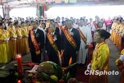 圖為高雄市旗后臨水宮信眾專程北上參加法會(huì),共襄盛舉。中新社發(fā) 黃少華 攝
