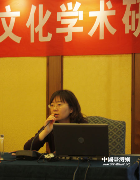 中國社科院文學研究所臺港澳文學與文化研究室副研究員李娜發(fā)言(中國臺灣網(wǎng) 徐麗華 攝)