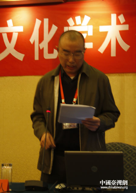 中國政法大學法律史學研究院教授、中央民族大學民族法學博士研究生導師李鳴在研討會上發(fā)言(中國臺灣網(wǎng) 徐麗華 攝)