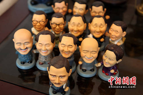 隨著大陸民眾赴臺(tái)旅游人數(shù)激增,臺(tái)灣業(yè)者推出兩岸領(lǐng)導(dǎo)人公仔,大受歡迎。圖為臺(tái)北一位人士收藏的孫中山、毛澤東、蔣介石、鄧小平、蔣經(jīng)國(guó)、馬英九、蕭萬(wàn)長(zhǎng)等個(gè)性公仔,個(gè)個(gè)造型講究,笑容可掬。中新社發(fā) 董會(huì)峰 攝