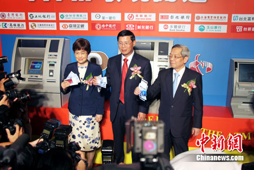 6月30日,中國銀聯(lián)、臺灣財金公司、臺灣銀行公會舉行記者會,宣布銀聯(lián)卡在臺ATM提領(lǐng)新臺幣、預(yù)借現(xiàn)金及余額查詢服務(wù)正式開通。