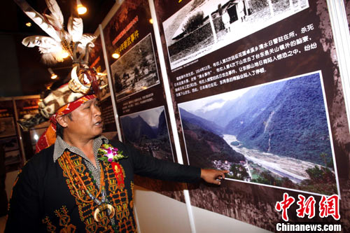 10月25日,“紀(jì)念臺(tái)灣光復(fù)65周年臺(tái)灣少數(shù)民族抗日史實(shí)圖片展”在北京臺(tái)灣會(huì)館開幕,來自臺(tái)灣排灣族的謝家定參觀展覽,并講述當(dāng)年先輩們抗日的故事。該展由全國臺(tái)聯(lián)、北京市臺(tái)聯(lián)及臺(tái)灣原住民出版社聯(lián)合舉辦,展覽共分27個(gè)單元,通過約500張歷史圖片及2萬余字的傳述,呈現(xiàn)了自日本帝國主義侵占臺(tái)灣開始至1933年間臺(tái)灣少數(shù)民族各族群的60余起抗日事件。這些珍貴的歷史圖片絕大部分都是第一次面向公眾。