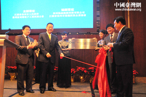 作為本次研討會的重頭戲和重要成果,保利協(xié)鑫能源控股有限公司臺灣代表處正式成立,徐州市委書記曹新平,保協(xié)鑫(集團)控股有限公司董事長、保利協(xié)鑫能源控股有限公司董事局主席朱共山先生,臺灣區(qū)電機電子工業(yè)同業(yè)公會理事長、華邦電子股份有限公司董事長焦佑鈞先生,協(xié)鑫光電科技發(fā)展有限公司常務副總裁兼臺灣代表處總裁單伶寶先生為保利協(xié)鑫公司臺灣代表處揭牌。這標志著徐臺兩地“雙向投資”新階段的到來,從而拉開了徐資入島的序幕。
