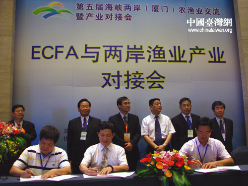 ECFA與兩岸漁業(yè)產業(yè)對接會項目簽約現場。(中國臺灣網 馬迪 攝)