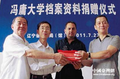 中國臺灣網(wǎng)7月29日沈陽消息 7月27日,馮庸外甥張文琦、長孫馮祖華夫婦以及外孫李絲絲等一行14人分別自臺灣、美國等地齊聚沈陽,將珍存了84年的馮庸大學(xué)兩枚校印贈予遼寧省檔案館。