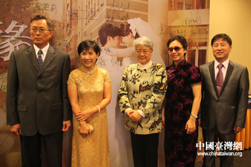 中國宋慶齡基金會副主席唐聞生出席喜宴并與雙方父母合影。(中國臺灣網(wǎng) 徐維彬 攝)