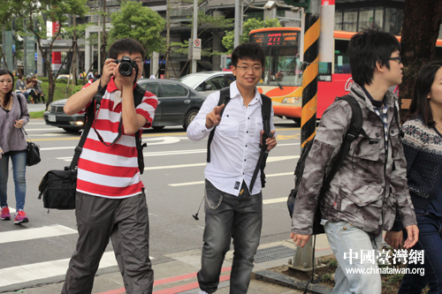 曾經(jīng)參加過(guò)中國(guó)宋慶齡基金會(huì)組織的參訪大陸活動(dòng)的臺(tái)灣學(xué)生們帶領(lǐng)自己的伙伴在臺(tái)北市進(jìn)行“走入臺(tái)灣,體驗(yàn)臺(tái)灣”的參觀游覽。(中國(guó)臺(tái)灣網(wǎng) 徐維彬 攝)