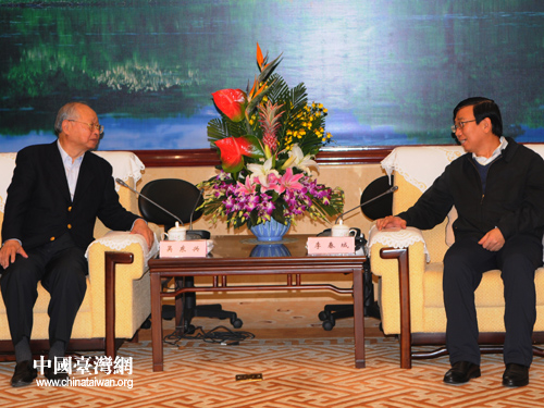 中國(guó)臺(tái)灣網(wǎng)12月22日成都消息 日前,中共四川省委副書(shū)記李春城在成都會(huì)見(jiàn)了來(lái)四川參加第七屆巴蜀文化精品展文物裝箱啟運(yùn)活動(dòng)的臺(tái)灣新光三越百貨股份有限公司董事長(zhǎng)吳東興一行。