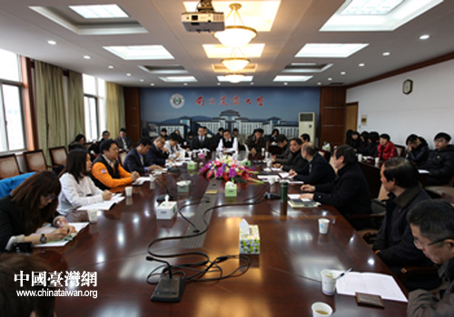 觀摩團(tuán)一行與南京農(nóng)業(yè)大學(xué)交流。(圖片來源:南京市臺辦)