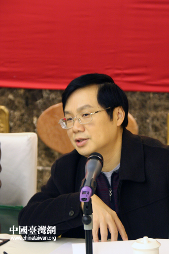 廣東省臺辦副主任張科向調(diào)研團專題介紹粵臺兩地經(jīng)貿(mào)文化交流情況。(中國臺灣網(wǎng) 楊麗 攝)