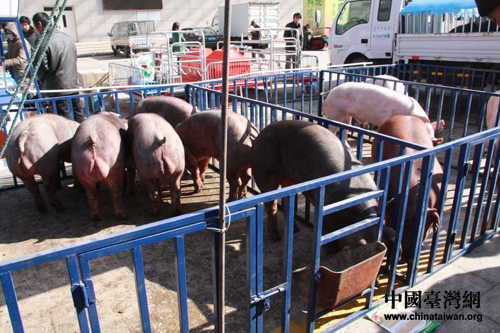 農(nóng)博會上展出的豬。(中國臺灣網(wǎng) 王怡然 攝)