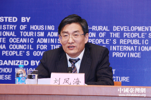 遼寧省錦州市委副書記、市長劉鳳海介紹本屆博覽會的籌備建設情況。(中國臺灣網(wǎng) 吳怡 攝)